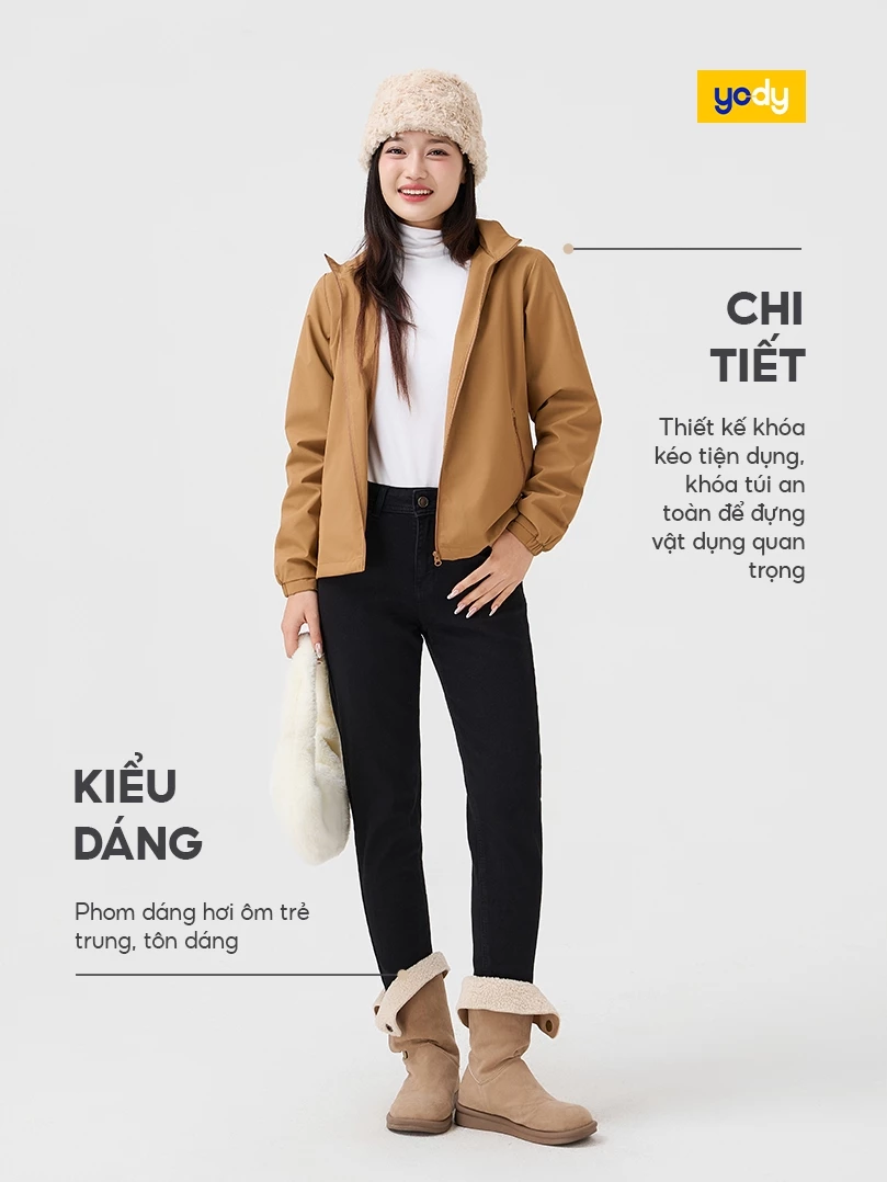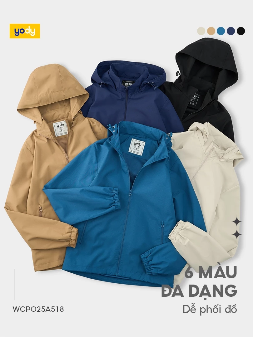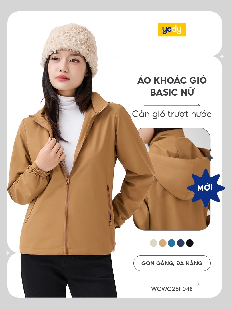 Áo khoác gió nữ YODY cao cấp giữ ấm, chống gió – bụi – nắng hiệu quả WCWC25F048
